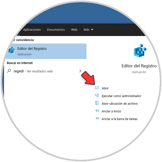 Lo primero a hacer será abrir el Editor de registros desde Inicio: