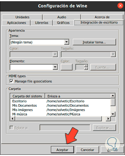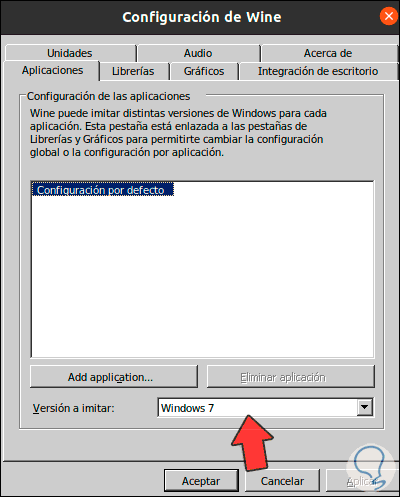 Allí disponemos de diversas opciones para configurar Wine, en Aplicaciones es posible definir para que tipo de versión de Windows se usara está disponible desde Windows 7 hasta Windows 10, en las demás pestañas podemos realizar los cambios que consideremos necesarios. Aplica los cambios.