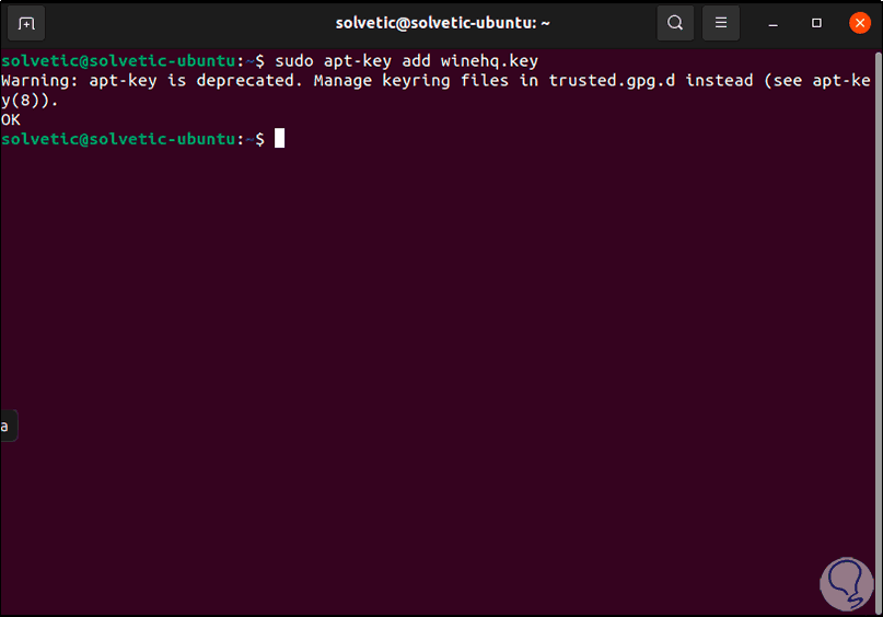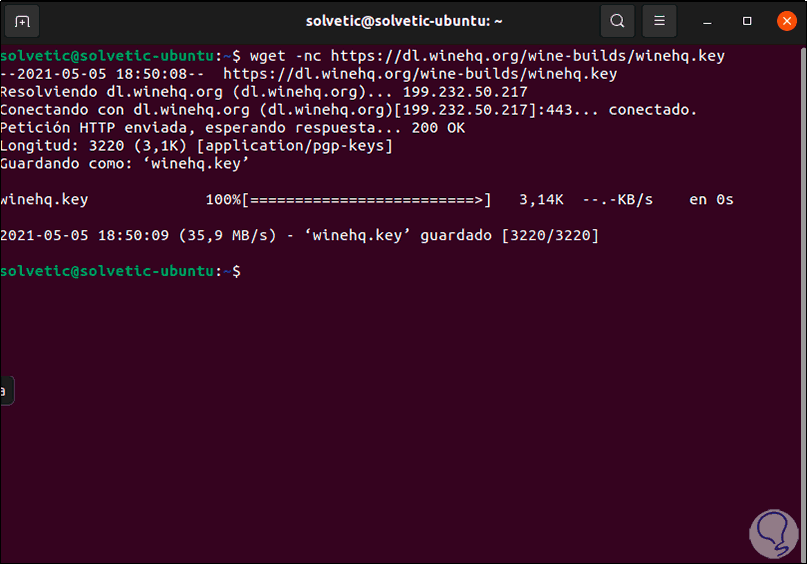 Ahora vamos a descargar la clave de Wine usando el siguiente comando: