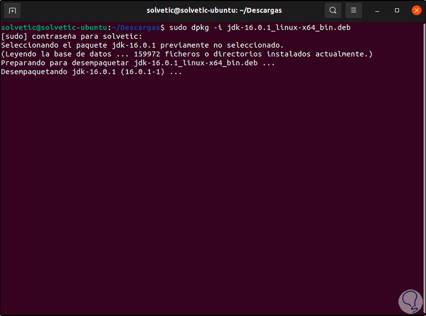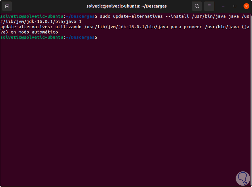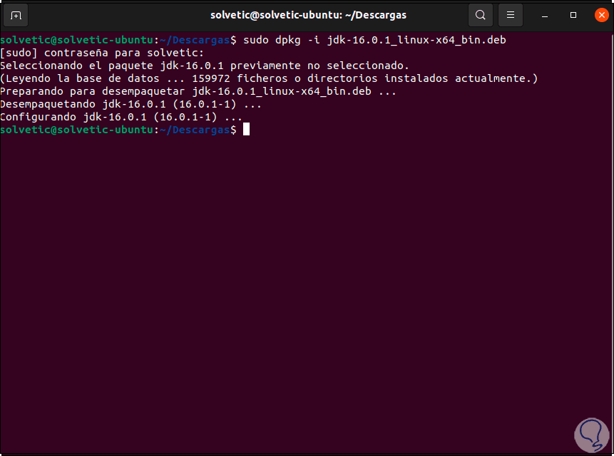Al finalizar veremos que se ha instalado Java en Ubuntu 21.10: