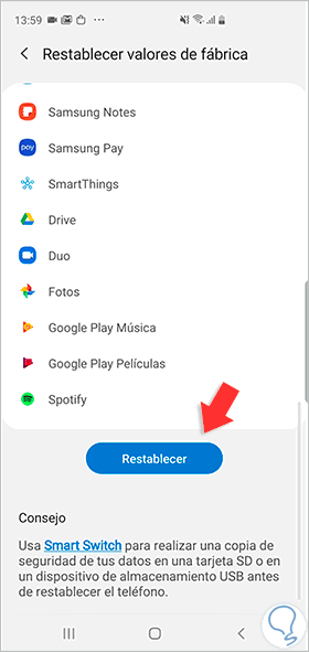 Lo siguiente será seleccionar "Restablecer valores de fábrica".
