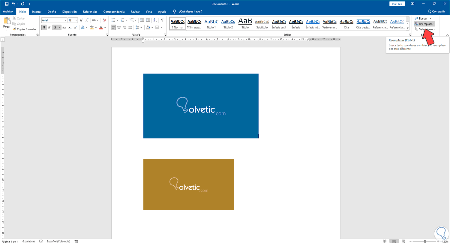 Damos clic en "Reemplazar todos" para borrar las imágenes del documento: