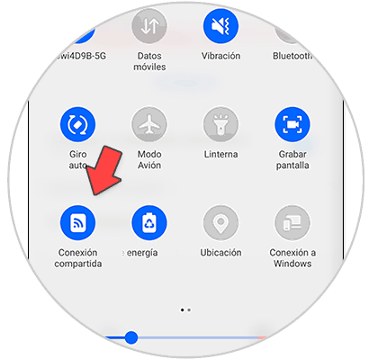 Desde el menú superior del teléfono, también puedes activar o desactivar el punto de red compartida o acceder a estas opciones pulsando sobre su opción.