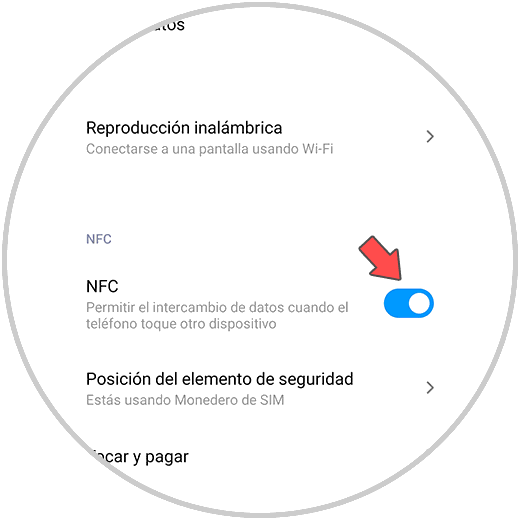 Dentro de aquí nos iremos hacia la parte inferior del menú y veremos que encontramos la opción de "NFC". Puedes activar o desactivar NFC desde aquí con el interruptor que aparece.