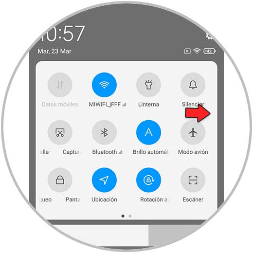 Lo primero que haremos será desplazar la pantalla de arriba abajo para abrir el panel de accesos directos de nuestro Xiaomi Mi 11.