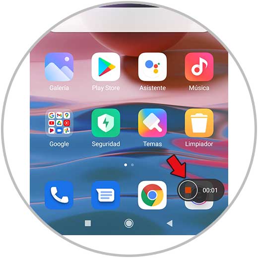 Verás que el icono se vuelve transparente mientras se hace la grabación de pantalla.
