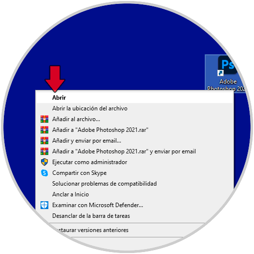 Iremos al acceso directo de nuestro Photoshop y mantendremos la siguiente combinación de teclas: