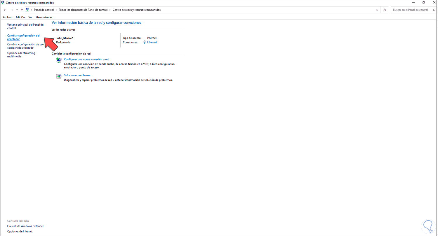 Allí damos clic en "Centro de redes y recursos compartidos":
