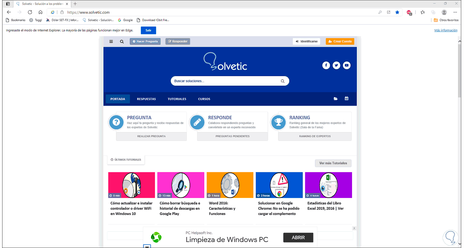 Si es necesario trabajar en un sitio que está diseñado para Internet Explorer, Solvetic te explicará la forma para activar este modo en Edge.
