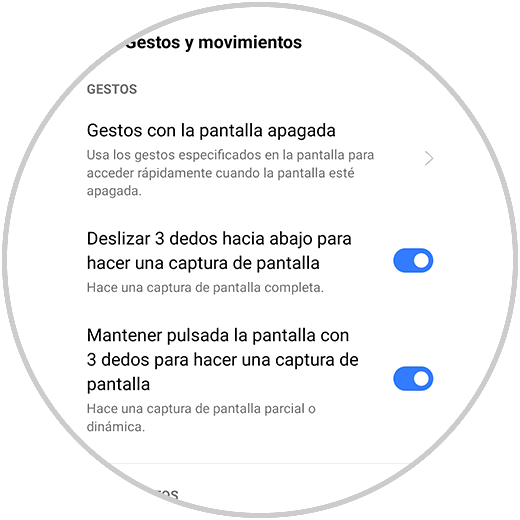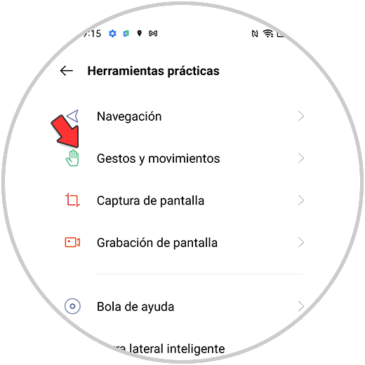 Ahora debes acceder al apartado de "Gestos y movimientos"