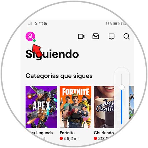 Lo primero que debes hacer es entrar en la app de Twitch desde el teléfono.