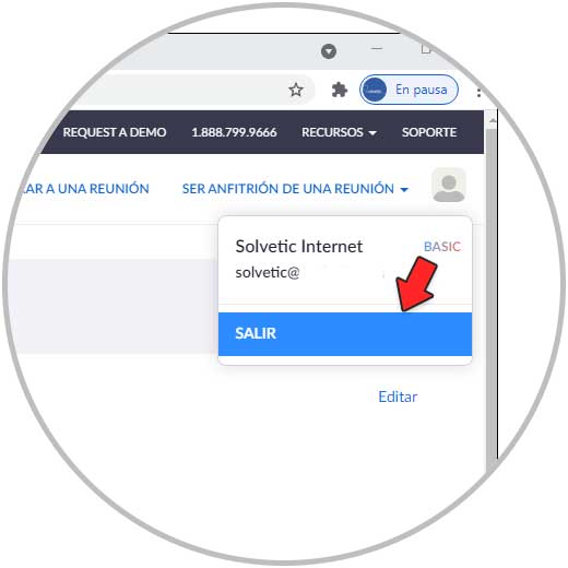 Ahora saldremos del perfil de Zoom en PC, para esto damos clic en el perfil y luego damos clic en "Salir":