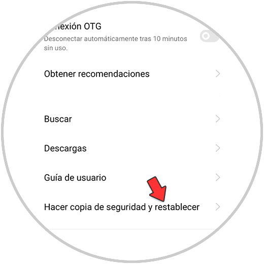 Vas a ver varias opciones. En este caso selecciona "Hacer copia de seguridad y restablecer" en la parte inferior.