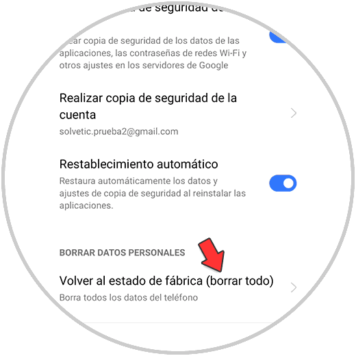 A continuación pulsa sobre "Volver al estado de fábrica"