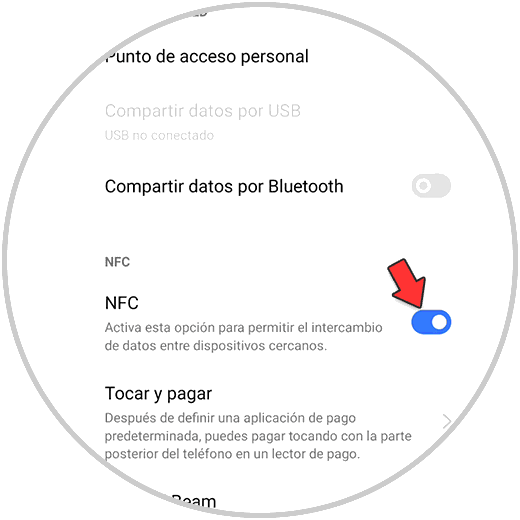 Finalmente verás que aparece una pestaña que pone "Activar NFC". La debes activar para que este servicio quede activo.
