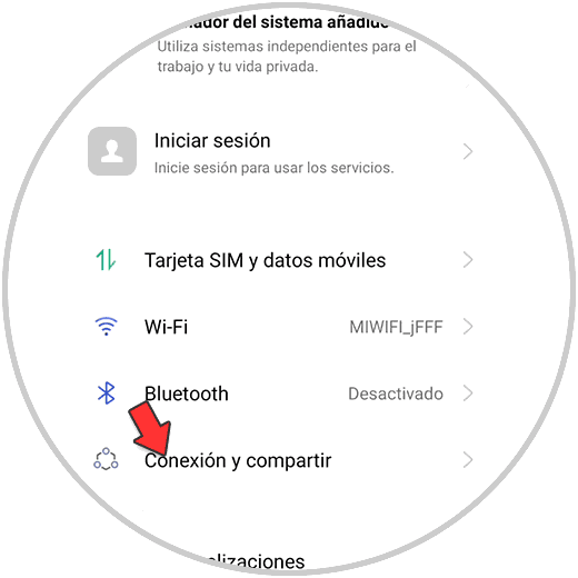 Lo siguiente será entrar en el apartado de "Conexión y compartir"