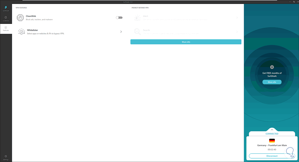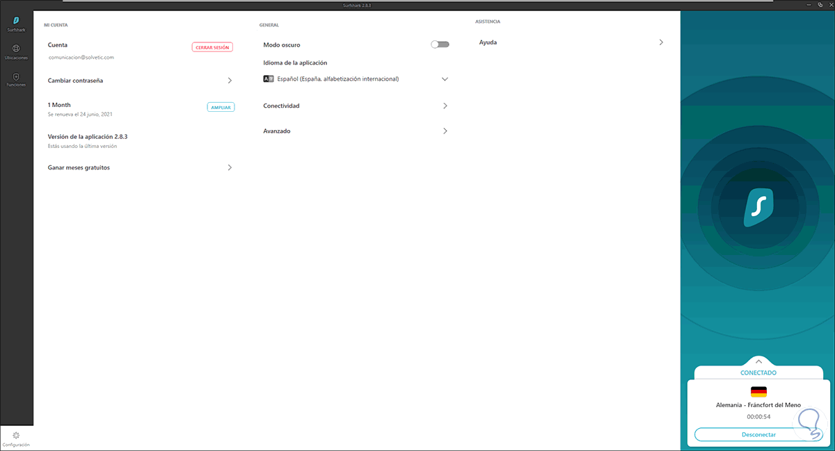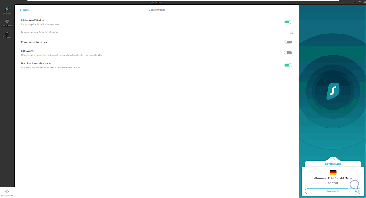 Algunos parámetros extras que podemos realizar en Surfshark son: