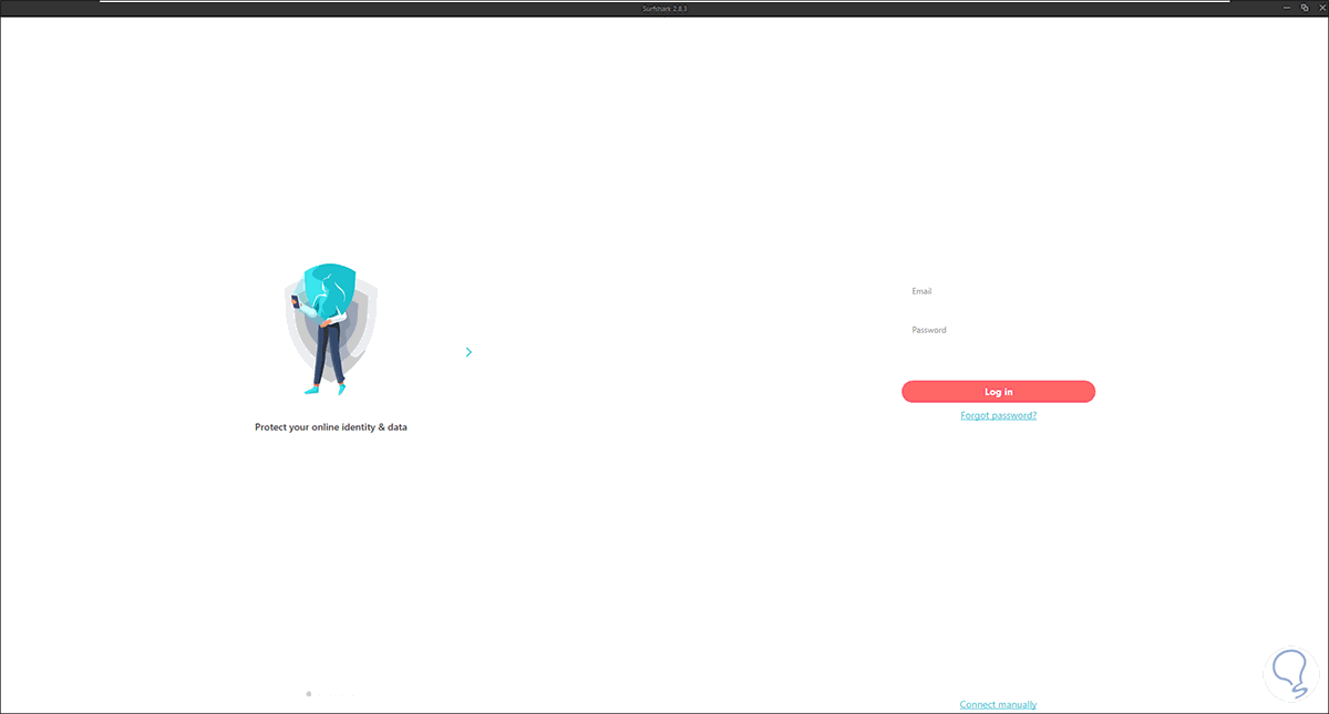 Iniciamos la sesión con la cuenta de Surfshark y este será el entorno inicial al cual accedemos: