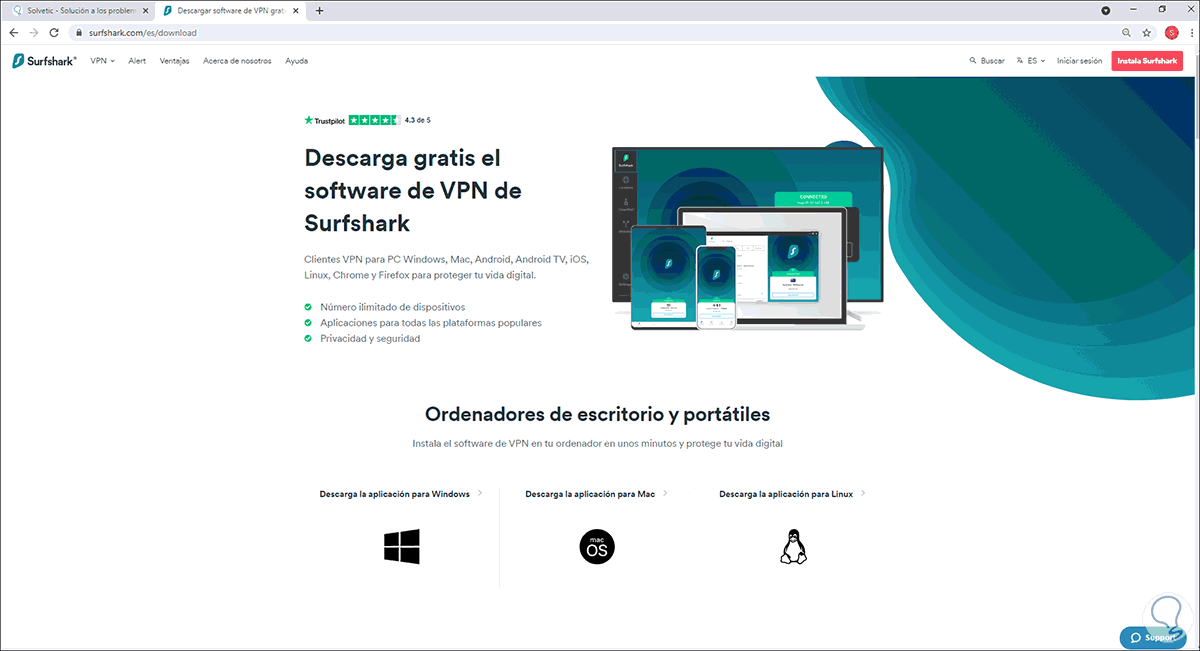 Surfshark puede ser usado en múltiples dispositivos (Windows, macOS, Linux, iOS y Android) y es compatible con tecnologías modernas como Alexa o Google Home.