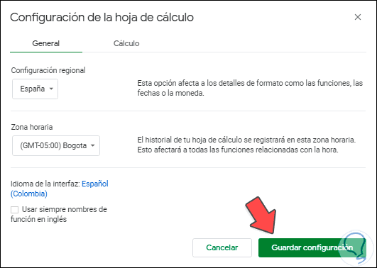 En la ventana desplegada, en "Configuración regional" seleccionamos la zona a usar en la cuenta de Google. Aplica los cambios dando clic en “Guardar configuración”.