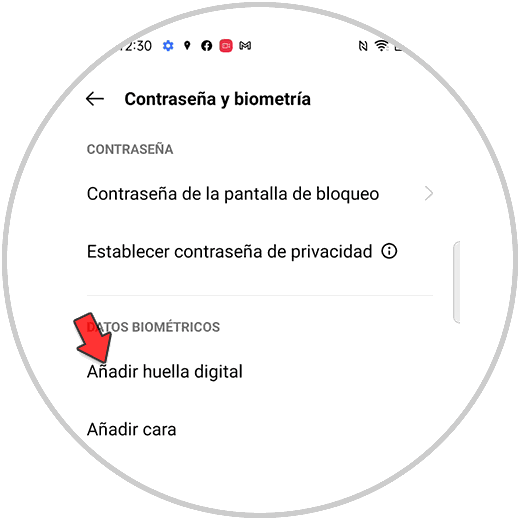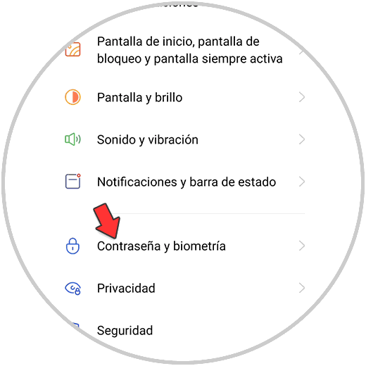 Lo siguiente será entrar en el apartado de "contraseña y biometria"