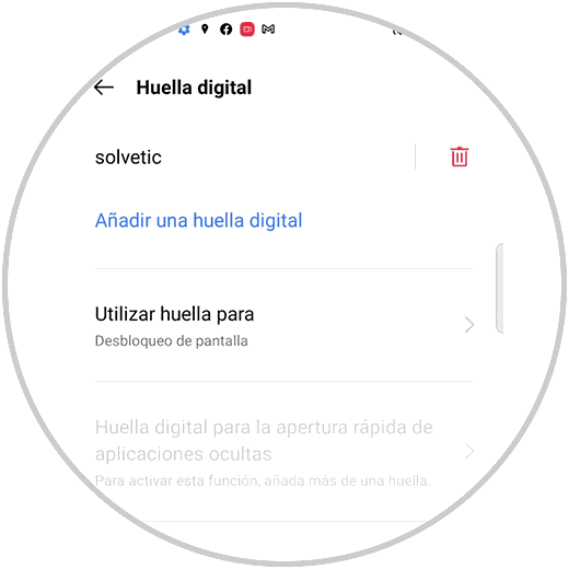 En el apartado "Utilizar huella para" tiene que estar desbloqueo de pantalla. Desde aquí podrás borrarla en caso de que lo necesites.