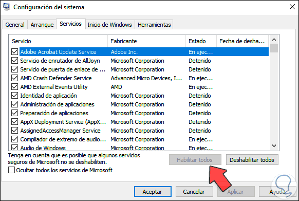 Validamos que todas las casillas estén activas y si no es posible dar clic en "Habilitar todos" para hacerlo, aplica los cambios.