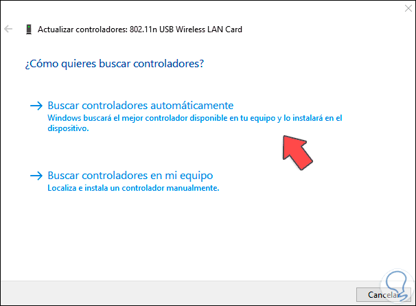 Allí es posible actualizar el controlador de forma automática o manualmente, por temas de funcionamiento te recomendamos usar la opción "Buscar controladores automáticamente", al dar clic en ella el sistema actualizará el controlador si existe alguna actualización: