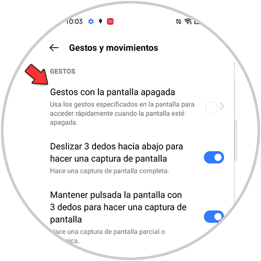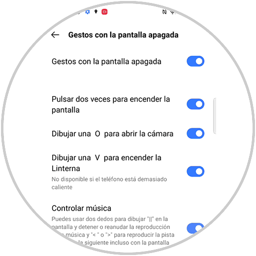 Desde aquí podrás activar todos los gestos que te interese poder realizar cuando la pantalla del Realme 8 esté apagada.