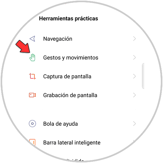 Lo siguiente será pulsar sobre "Gestos y movimientos"