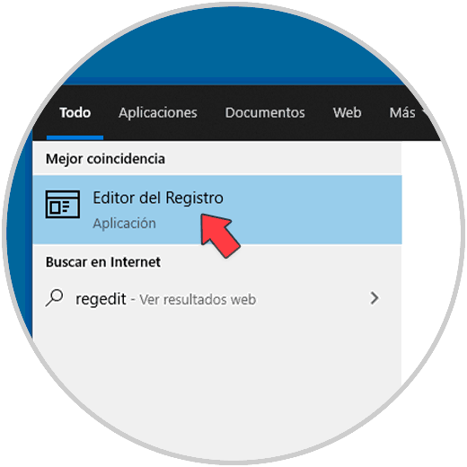 El primer método que veremos será desde los registros del sistema de modo que lo mas recomendable es crear una copia de seguridad de estos registros o crear un punto de restauración del sistema, después de esto abrimos el Editor de registros desde Inicio: