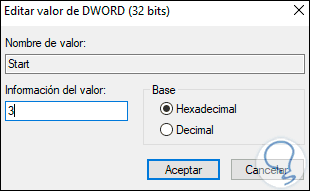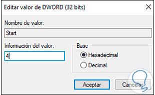 Allí damos doble clic sobre el valor "Start" y será desplegada la siguiente ventana: