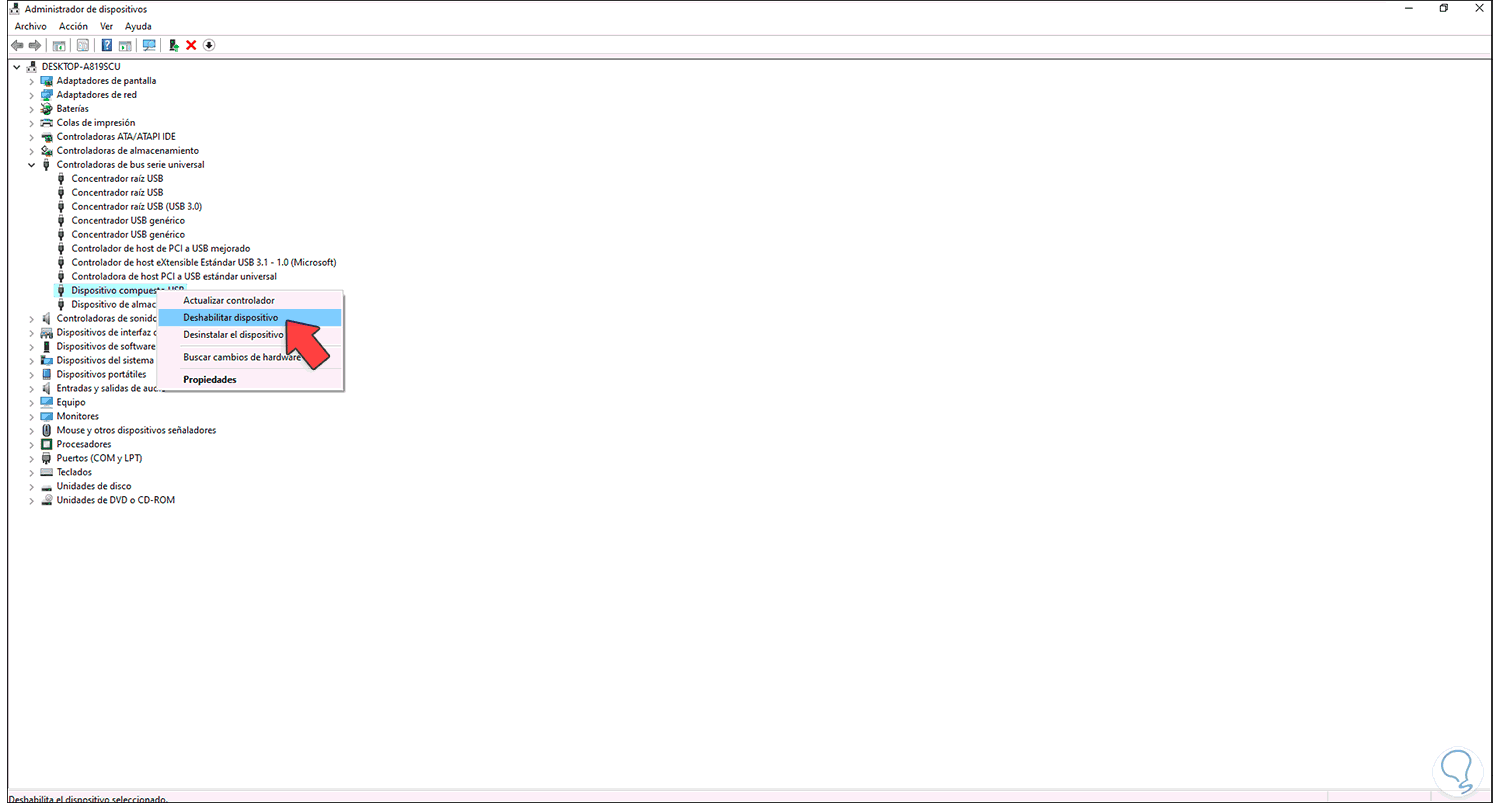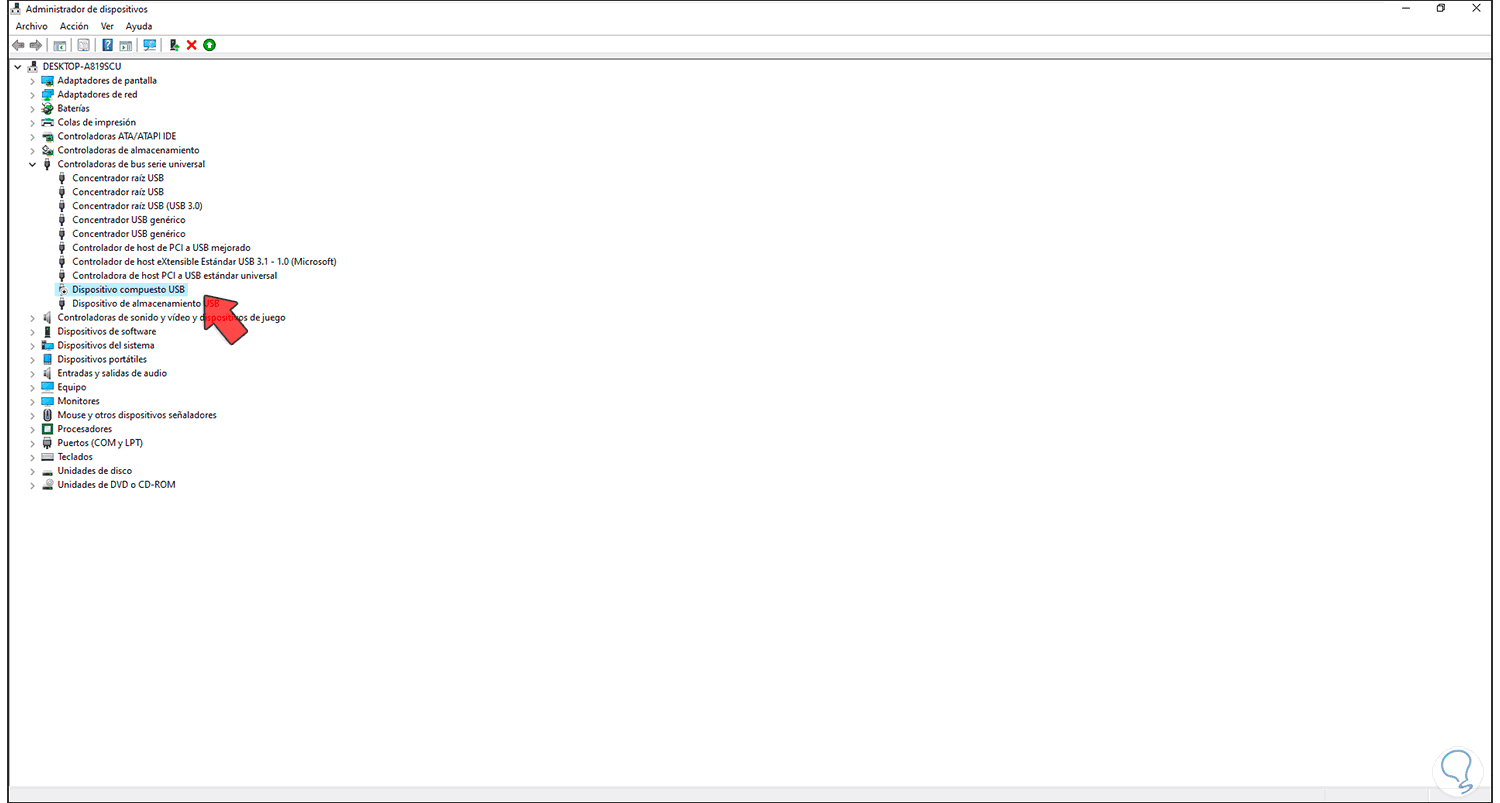 2. Desactivar puertos USB Windows 10 desde Administrador de dispositivos