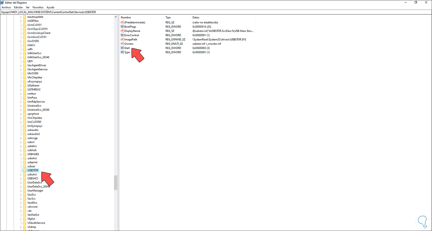 1. Desactivar puertos USB Windows 10 desde Editor de registros
