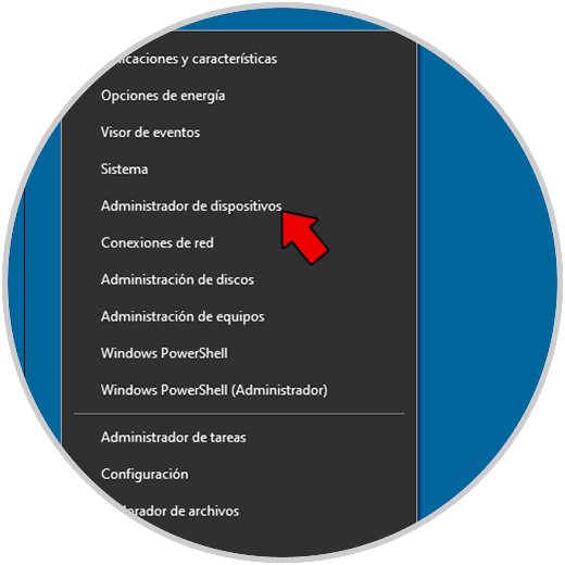 Otro de los métodos tradicionales para esta tarea es directamente desde el Administrador de dispositivos, para ello accedemos al Administrador de dispositivos desde Inicio: