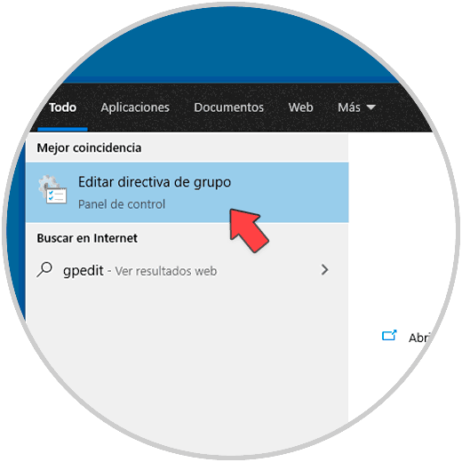 Esta opción está disponible solo en las versiones Pro y Enterprise de Windows 10, para usar este método, ingresamos "gpedit" en Inicio y allí accedemos al editor de políticas: