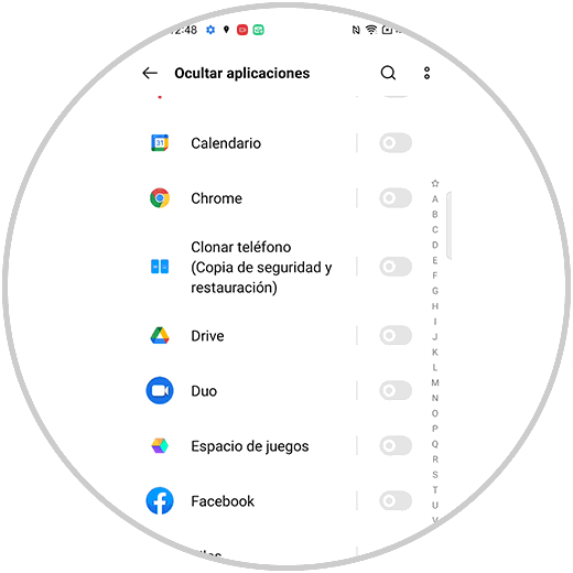 Ahora debes activar la pestaña de las apps que quieres ocultar,