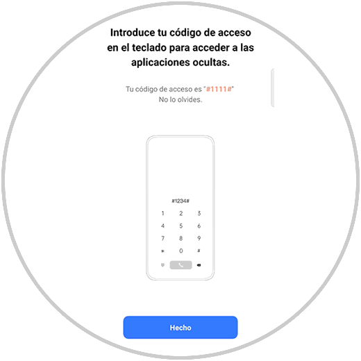 Finalmente configura un código de acceso para acceder a las apps ocultas cuando quieras entrar en ellas.