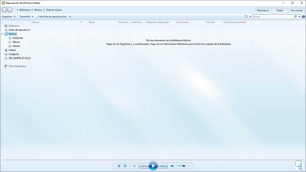 Vemos el Reproductor de Windows Media activo en Windows 10 trabajando normalmente: