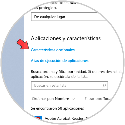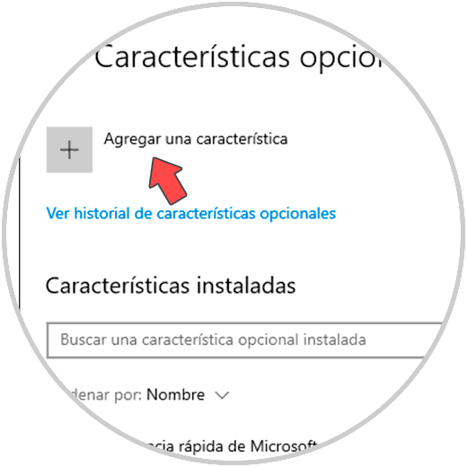 Damos clic en "Características opcionales", veremos lo siguiente: