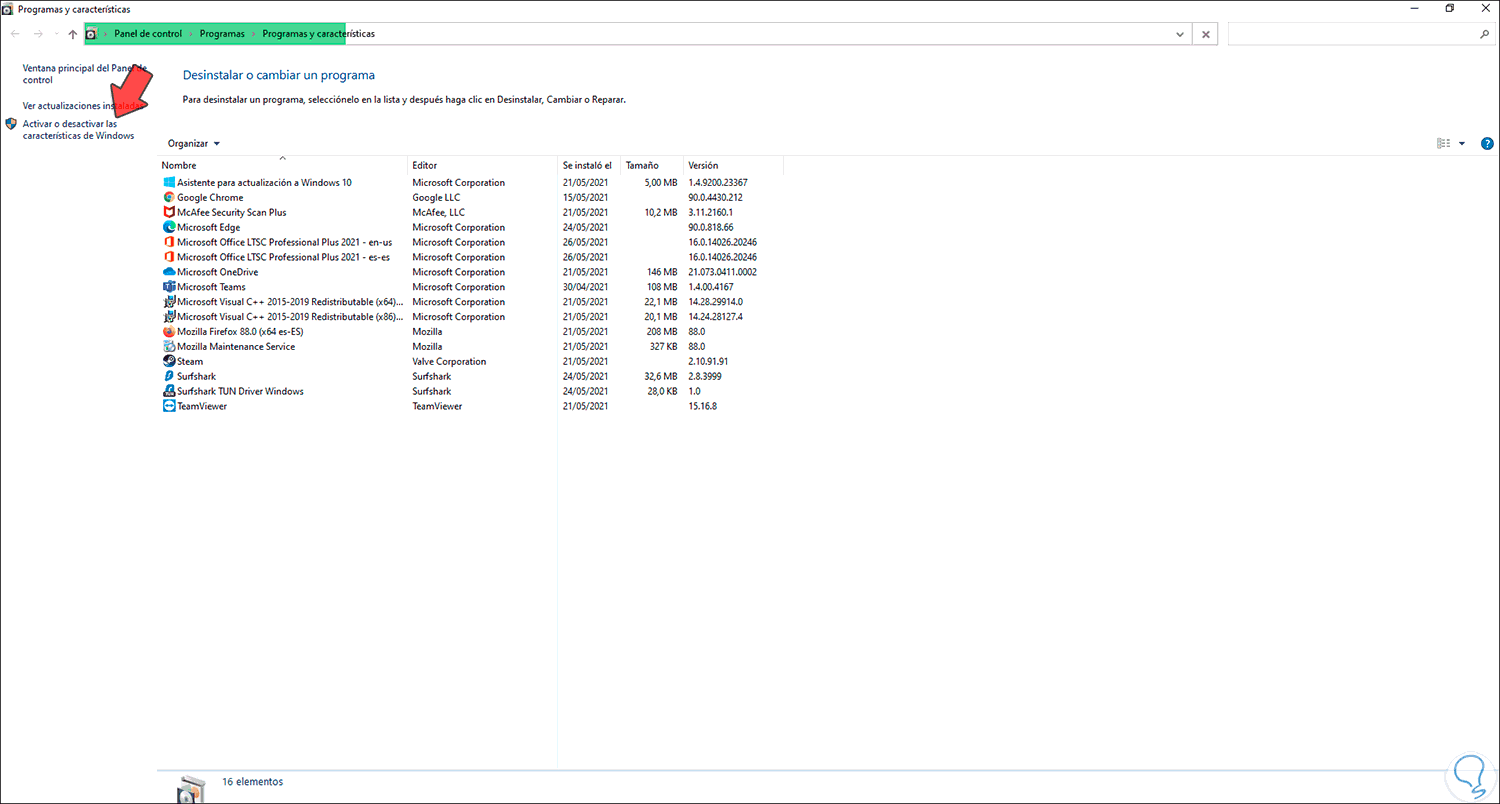 Luego iremos a "Aplicaciones - Aplicaciones y características":