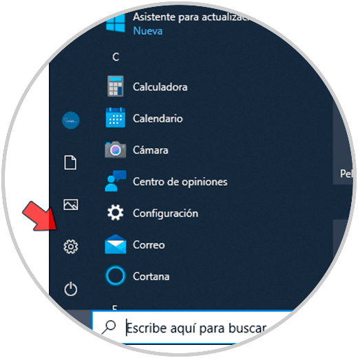 Para la tarea de desinstalar el reproductor de Windows Media, accedemos al menú "Inicio - Configuración":