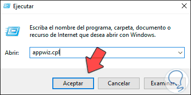 Esta opción nos permite únicamente deshabilitar el reproductor de Windows Media sin que sea necesaria su desinstalación total, para esto, abrimos Ejecutar e ingresamos el comando "appwiz.cpl":