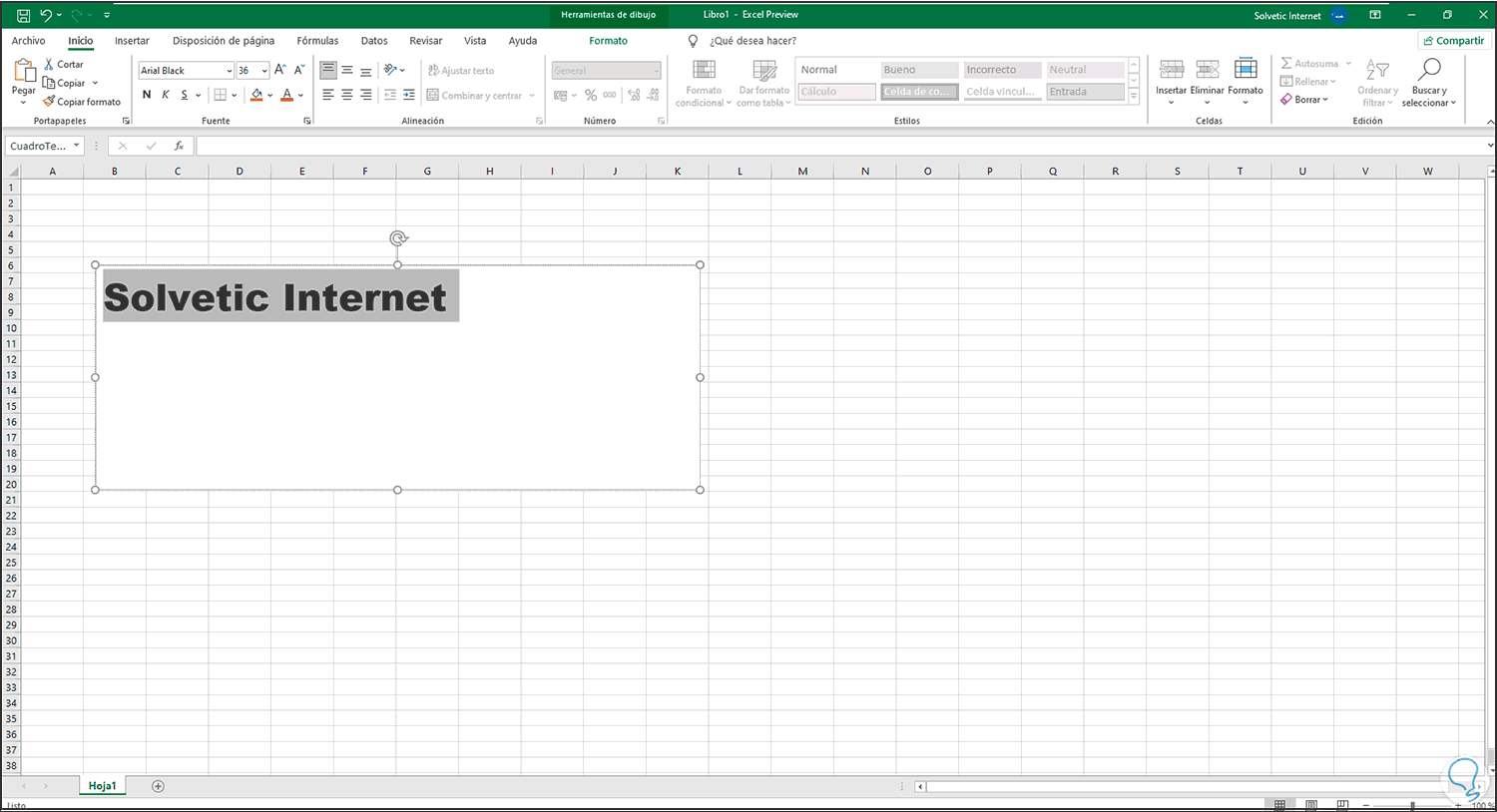 Seleccionamos el tamaño del cuadro en la hoja de cálculo y luego insertamos el texto de la marca de agua allí: