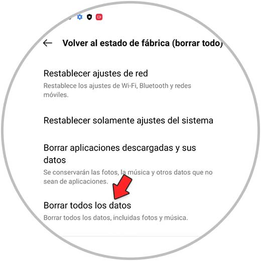A continuación tendrás que pulsar sobre "Borrar todos los datos"