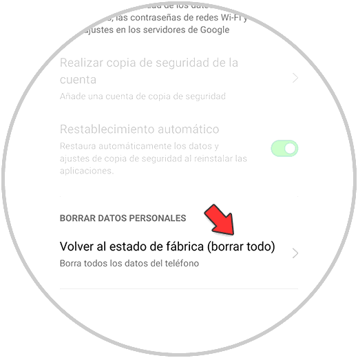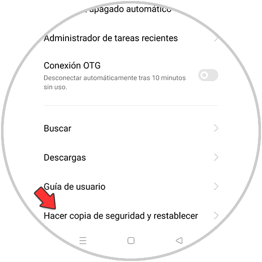 Lo siguiente que debes hacer es pulsar sobre "Hacer copia de seguridad y restablecer"