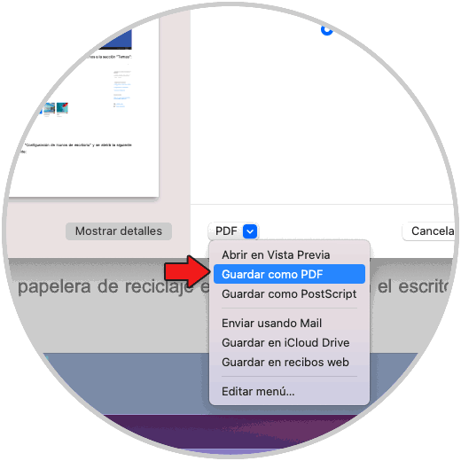 Ahora, en la parte inferior selecciona la opción "Guardar como PDF":