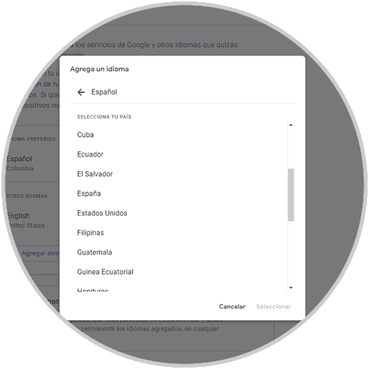 Después de esto asignamos el idioma general de la cuenta de Google: