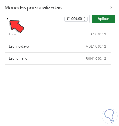 Aplica los cambios dando clic en el botón Aplicar, esto cambiara inmediatamente el formato de la moneda en las celdas seleccionadas:
