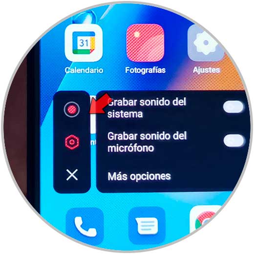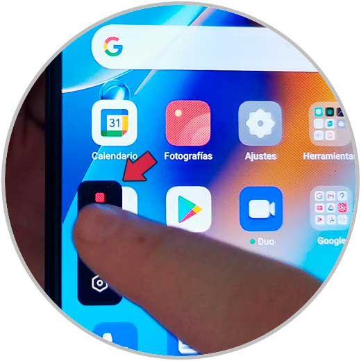 Veremos que mientras se realiza la grabación tenemos un botón de control en uno de los lados de la pantalla y se vuelve transparente mientras se hace la grabación de pantalla.